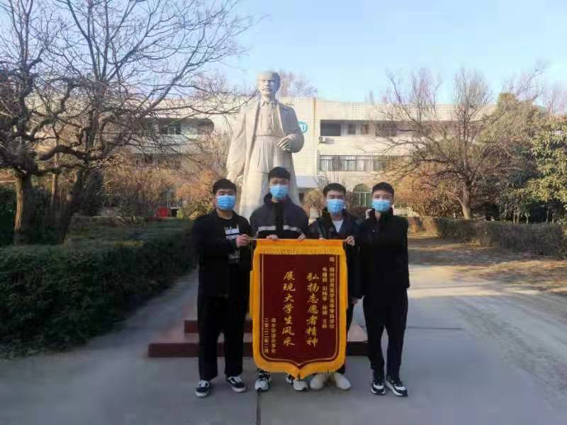 近日,鄭州澍青醫學高等專(zhuan) 科學校2019級臨(lin) 床醫學係韋曙輝、陳模、王唯和2019級醫學技術係劉禕亭四名同學被鄭州市中原區須水街道辦事處授予“弘揚誌願者精神,展現大學生風采”錦旗,對他們(men) 在疫情期間挺身而出、堅守一線全力支持社區開展疫情防控工作表示感謝。
