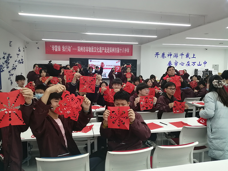 3月4日下午,鄭州市第十八中學與(yu) 鄭州市文化館“綠城春雨”誌願服務隊聯合舉(ju) 行非物質文化遺產(chan) 進校園活動,旨在弘揚中國優(you) 秀傳(chuan) 統文化,增強師生非物質文化遺產(chan) 保護傳(chuan) 承意識,提升文化自豪感和自信心,進一步加強文明校園建設。本次活動分為(wei) 剪紙、麵塑、香包製作等體(ti) 驗課程,通過講授、體(ti) 驗、展示、交流的方式進行。