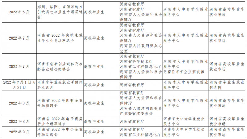 “新時代·新夢想”活動針對河南省2022年高校畢業(ye) 生,特別是低收入家庭畢業(ye) 生、少數民族畢業(ye) 生、殘疾畢業(ye) 生、孤兒(er) 大學生、退役大學生士兵、女大學生等特殊群體(ti) ,深入實施“中央專(zhuan) 項彩票公益金宏誌助航計劃”,繼續開展“跟蹤幫扶保就業(ye) ”專(zhuan) 項活動,實行“一生一策”動態管理,重點關(guan) 注、重點推薦、重點幫扶,在“人人持證、技能河南”工作開展中優(you) 先開展職業(ye) 技能培訓。通過開展線上線下就業(ye) 指導、精準送崗、職業(ye) 生涯規劃大賽、發放求職創業(ye) 補貼等活動,幫助他們(men) 提高綜合素質和就業(ye) 競爭(zheng) 力,確保有就業(ye) 意願和就業(ye) 能力的畢業(ye) 生順利實現就業(ye) 。