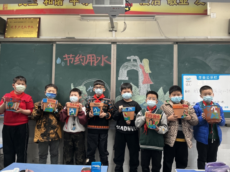 隊員們(men) 通過演講、討論、問答競賽等形式,使大家感受到隨著人類對水的需求量急劇增長,作為(wei) “生命之源”的水資源已嚴(yan) 重短缺,有些地方已鬧起水荒;明白對於(yu) 地球上的所有物種來說,離開了水就意味著疾病、饑餓和死亡等的發生。輔導員給大家講述了保護現有水資源的重要性,列舉(ju) 了生活中浪費水資源的不良行為(wei) ,並通過豐(feng) 富多彩的花盆繪畫,讓節約用水的理念根植隊員心中:節約用水、合理用水、保護水資源,從(cong) 現在開始,從(cong) 自己做起,從(cong) 點滴做起,隨手關(guan) 緊水龍頭,且通過多種形式向別人宣傳(chuan) 節約用水,人人爭(zheng) 做珍愛地球的環保小衛士,讓我們(men) 的家園永遠擁有藍天。