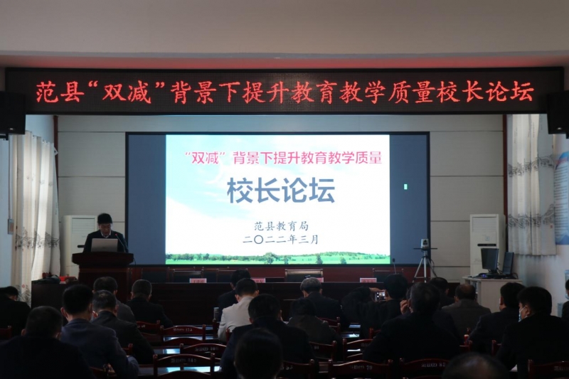 3月30日,範縣教育局舉(ju) 辦“雙減”背景下提升教育教學質量校長論壇,縱深研討“雙減”背景下大力提升全縣教育教學質量經驗、措施和方法。濮陽市義(yi) 務教育教學研究室主任張自福,範縣教育局黨(dang) 組書(shu) 記、局長張善友出席活動並講話,縣政府總督學、局黨(dang) 組副書(shu) 記王洪祥,縣教育局副局長史大士出席活動。全縣義(yi) 務教育階段中小學校長、局機關(guan) 股室長參加了論壇活動。