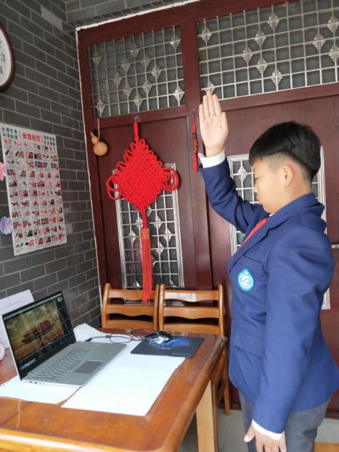 同學們(men) 通過線上平台參與(yu) 雲(yun) 升旗活動,他們(men) 用堅毅的神情注視著國旗在莊嚴(yan) 的國歌聲中緩緩升起,心中對先烈的哀思和致敬油然而生,立誌為(wei) 國旗增添新的榮光。