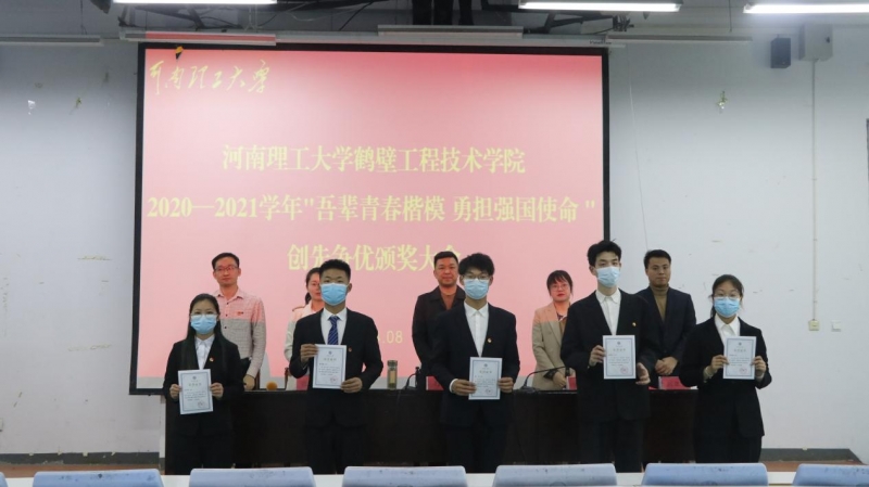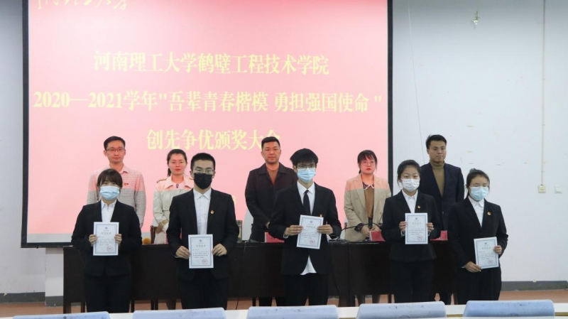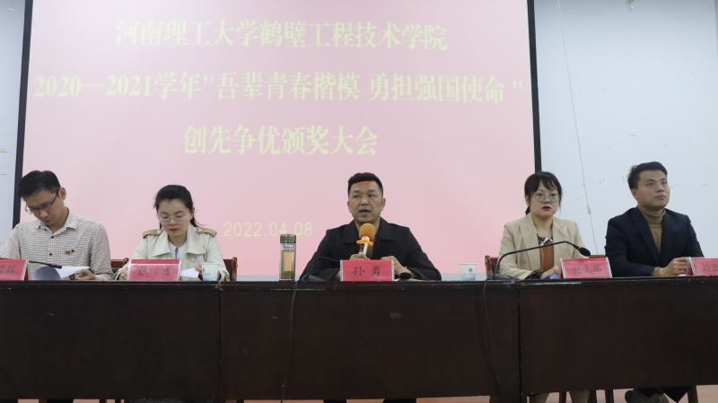 4月8日,河南理工大學鶴壁工程技術學院在二樓階梯教室進行了“吾輩青春楷模 勇擔強國使命”2020—2021學年"創先爭(zheng) 優(you) "頒獎大會(hui) ,此次頒獎大會(hui) 嚴(yan) 格按照疫情防控的要求,選取30名學生代表現場頒獎,采用抖音直播、騰訊會(hui) 議等雲(yun) 上觀看的方式進行。