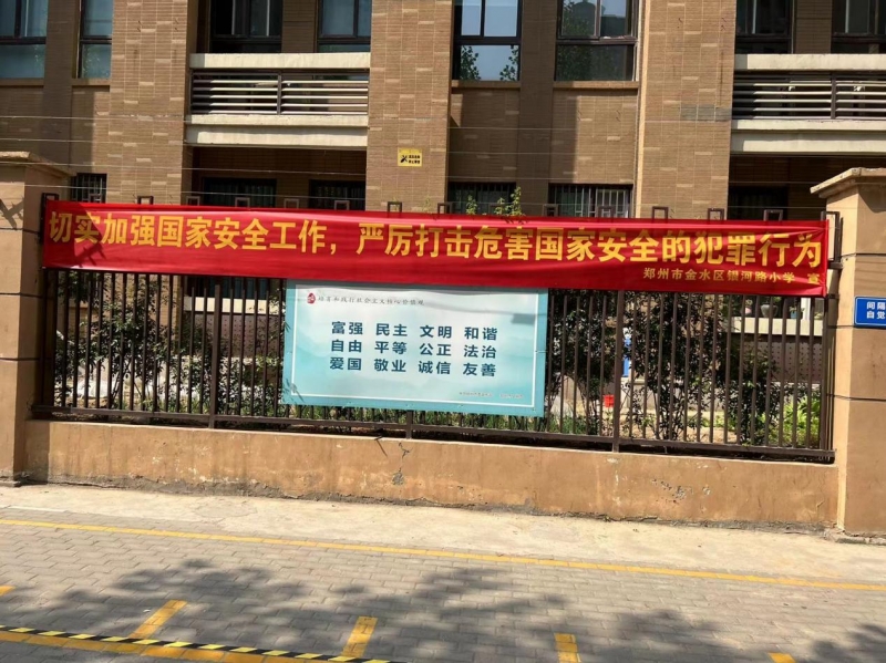 金水區銀河路小學在4月11日早上的升旗儀(yi) 式中開展以《遵紀守法,做一名合格的小公民》國家安全為(wei) 主題的演講活動,並利用班會(hui) 等時間組織學生集體(ti) 收看安全教育平台上推出的4·15國家安全專(zhuan) 題課。在學校校門的顯著位置,推出了國家安全教育日展板、校園外圍牆欄杆懸掛橫幅、校門口LED屏滾動宣傳(chuan) ,使全體(ti) 師生和家長了解全民國家安全教育日來曆,深刻認識到每年的4月15日為(wei) 全民國家安全教育日。