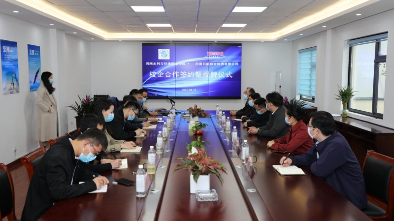 4月12日,河南水利與(yu) 環境職業(ye) 學院大學生企業(ye) 文化教育實踐基地、校外實習(xi) 實訓基地在河南日盛綜合檢測有限公司掛牌成立。校黨(dang) 委副書(shu) 記李連水、河南日盛綜合檢測有限公司總裁李寶華共同為(wei) 基地揭牌,並簽訂了合作協議。河南日盛綜合檢測有限公司總經理徐曉雷,總工辦、結構部、環境部、節能部負責同誌等公司代表,學校黨(dang) 委宣傳(chuan) 部、水利工程係、實驗實訓中心等部門負責同誌參加儀(yi) 式。雙方圍繞專(zhuan) 業(ye) 人才培養(yang) 、校園文化與(yu) 企業(ye) 文化對接、專(zhuan) 業(ye) 實習(xi) 實訓等內(nei) 容進行了廣泛深入研討。