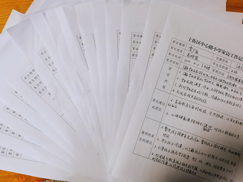 牢記使命,編織“家校網”。教師按照“七必進”、“六知道”、“三結合”等家訪月活動要求,發放《上街區中心路小學家訪工作記錄表》,廣泛傾(qing) 聽家長對學校教育的心聲,了解社會(hui) 對學校教育的真實感受和評價(jia) ,密切教育者、受教育者、學生家長之間的關(guan) 係,建立起家校互聯、互信機製。