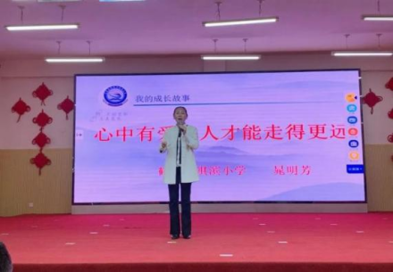 聽課結束後,名師工作室主持人晁明芳作了題為(wei) 《心中有愛,人才能走得更遠》的報告,回顧了鶴山區這片土地給予她的滋養(yang) 和溫暖。晁明芳還分享了她的名師成長曆程。