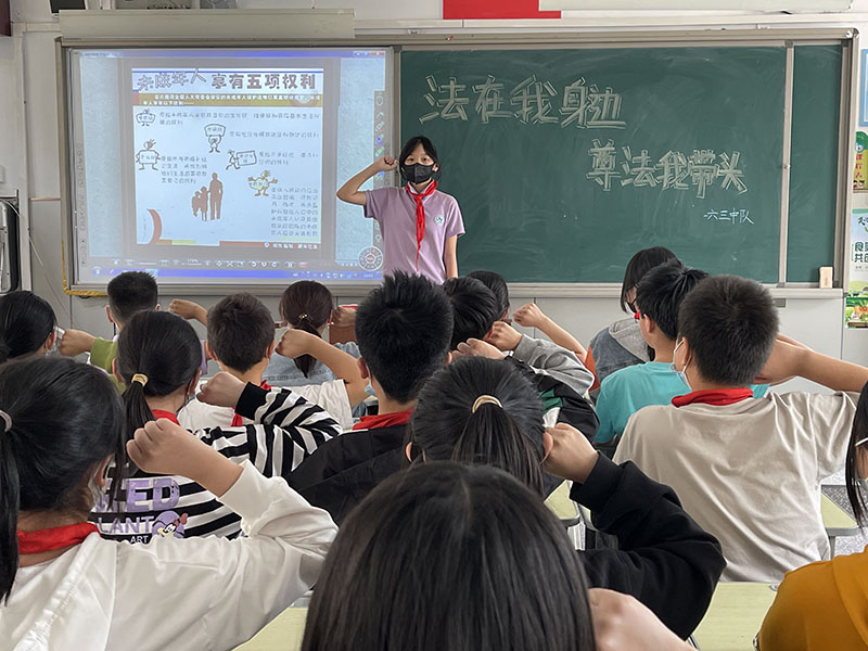 各中隊輔導員通過組織班級法律文化日、觀看法治影片、開展法治教育征文、法律知識競賽等多種形式,運用少先隊員喜聞樂(le) 見的手段,提升法治宣傳(chuan) 教育的實效性;通過一些真實案例,以案析法、以案學法,向隊員們(men) 講解遇到危險時,應當如何保護自己的生命及財產(chan) 安全,如何運用法律武器保護自己;同時對少先隊員容易遇到的校園欺淩、電信詐騙等熱點問題進行了普法宣傳(chuan) 。