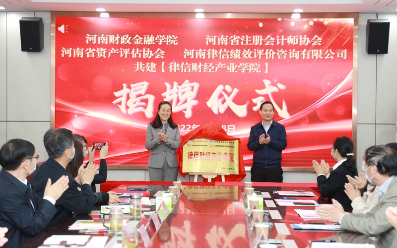 校黨(dang) 委書(shu) 記王雪雲(yun) 和省財政廳總會(hui) 計師馬曉飛共同為(wei) “律信財經產(chan) 業(ye) 學院”揭牌
