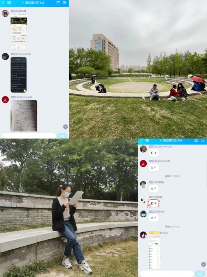 學校學生社團依托“百日行動”開展形式多樣的打卡活動,助力朋輩引領,充實校園生活。書(shu) 法美術協會(hui) 在陳從(cong) 誌老師指導下線上以書(shu) 傳(chuan) 情繪真心,以筆代劍踏征途,透過一筆一劃,向每一位與(yu) 疫情奮戰的人傳(chuan) 遞溫暖和力量,書(shu) 畫交流筆墨抗疫;讀者協會(hui) 在曹慶娟老師線上指導下每日讀書(shu) ,以書(shu) 為(wei) 媒,師生共品經典,從(cong) 書(shu) 中汲取力量,讓閱讀滋養(yang) 心靈,宅而“不荒”,宅有“所得”,為(wei) 戰“疫”添書(shu) 香;英語協會(hui) 在郭平老師指導下每日美文精讀,一起分享學習(xi) 方法與(yu) 心得體(ti) 會(hui) ,相互借鑒學習(xi) ,協會(hui) 將把“心連心,同抗‘疫’”係列活動繼續推進,把積極的心態與(yu) 美好心情傳(chuan) 遞給更多人,用好習(xi) 慣成就堅韌品格;求是學社在慕運動老師指導下依托QQ群每日線上數學討論答疑,有理性的分析,有清晰的解答,有激烈的討論,共同學習(xi) ,共同進步,用快樂(le) 學習(xi) 助力抗疫;郭平老師在線上指導翻譯協會(hui) 科學開展社團活動,錄製“佳句速遞”視頻等形式極大豐(feng) 富了學生們(men) 在疫情期間的學習(xi) 生活,深化了學校“三全育人”體(ti) 係建設,濃鬱了工大校園的學習(xi) 氛圍。時光影社及攝影愛好者們(men) 用自己敏銳的雙眼、感恩的內(nei) 心以及手中的鏡頭,溫暖地記錄著校園內(nei) 忙碌的、奉獻的、美麗(li) 的身影,表達著學子們(men) 的拳拳感激之情,他們(men) 用豐(feng) 富的照片,記錄著工大師生的抗疫精神和一個(ge) 個(ge) 動人的故事。