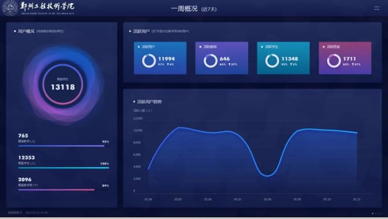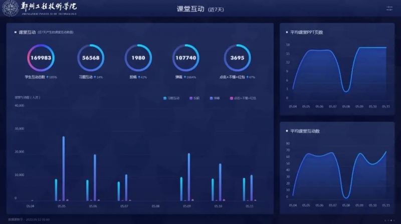 受新冠肺炎疫情影響,5月5日起,學校全麵開啟線上教學。為(wei) 確保線上線下教育教學實質等效,學校製定了《關(guan) 於(yu) 進一步提升線上教育教學質量的通知》《集中隔離學生在線學習(xi) 幫扶方案》等文件,統一教學平台、加強教學管理,強化督導。5月5日—11日,雨課堂覆蓋教師765人,學生12353人,教學班2096個(ge) 。開展教學活動總計3288次,開課總計2675門次,參加學習(xi) 學生119908人次,課堂互動169533次,其中習(xi) 題互動56568次,發送彈幕107343次。全體(ti) 師生思想穩定,線上教學秩序良好。