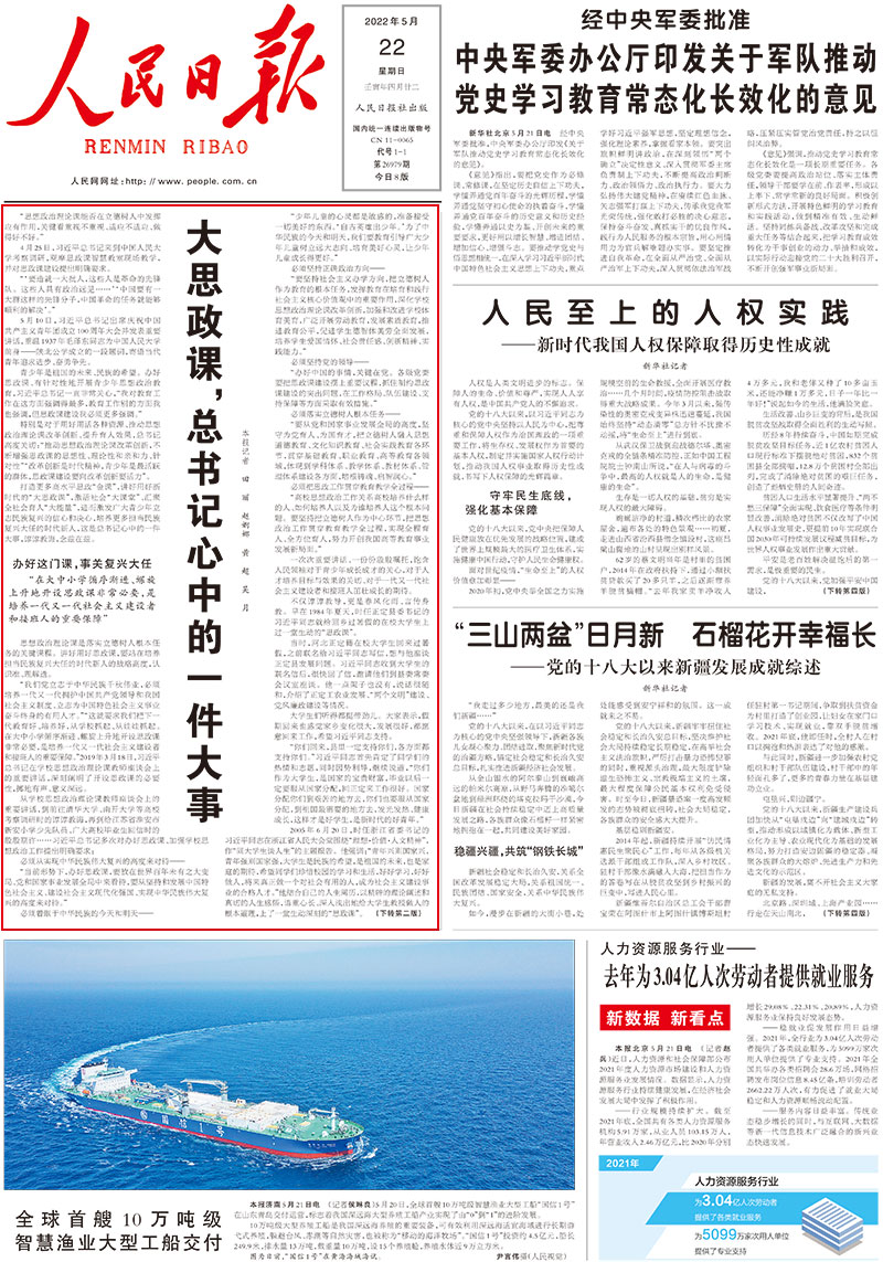 4月25日,習(xi) 近平總書(shu) 記來到中國人民大學考察調研,觀摩思政課智慧教室現場教學,並對思政課建設提出明確要求。