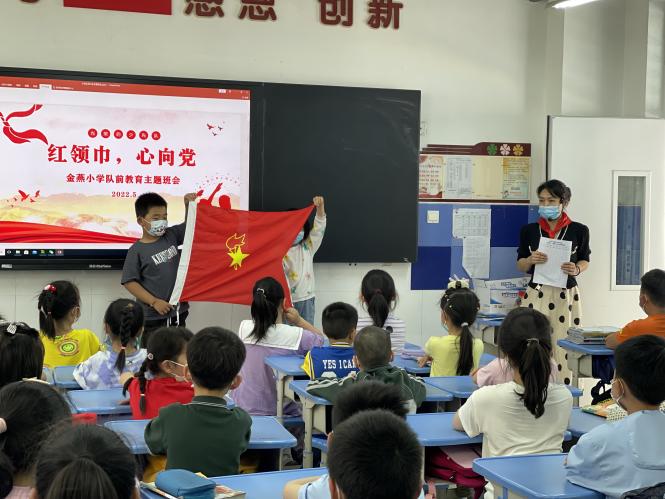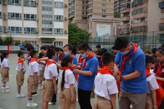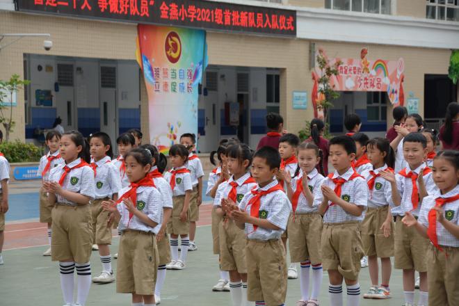 5月27日下午,嘹亮清澈的歌聲在校園上空回蕩,紅色旗幟在風中飄揚。鄭州市金水區金燕小學隆重舉(ju) 行“喜迎二十大,爭(zheng) 做好隊員”2021屆第一批入隊儀(yi) 式暨“慶六一”主題隊日活動,105名新隊員在老師的陪伴和見證下,光榮地加入了中國少年先鋒隊。
