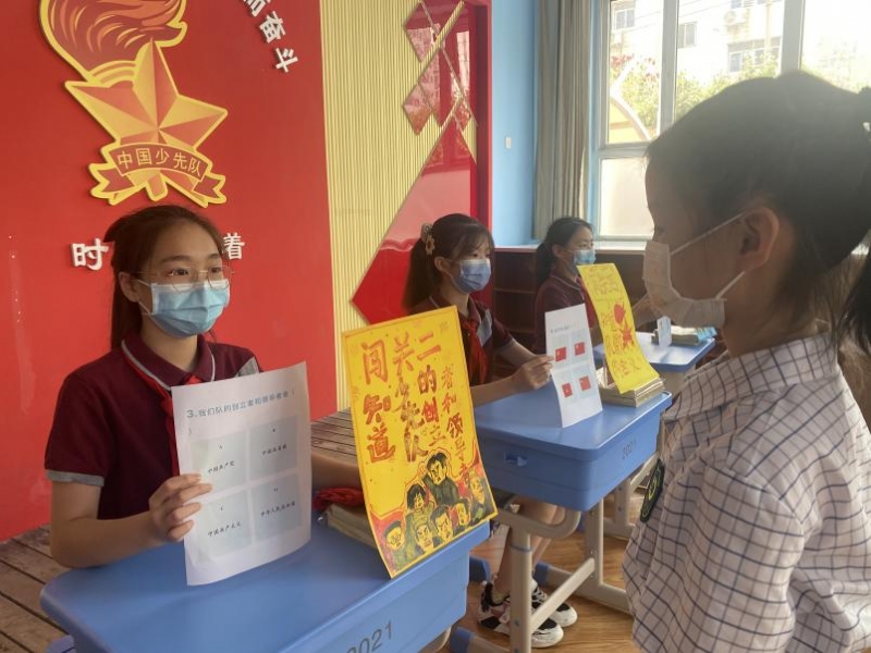 活動前期,老師們(men) 帶領一年級小朋友們(men) 開展了一係列隊前教育活動,幫助一年級預備隊員了解並掌握隊知識,加強少先隊的光榮感和責任感。根據學校分批入隊方案,學校采取入隊大闖關(guan) 的方式做好“六知、六會(hui) 、一做”基礎知識的考核,並結合德、智、體(ti) 、美、勞五大方麵進行全麵評價(jia) ,堅持“五育並舉(ju) ”,奠定入隊堅實基礎。大隊輔導員劉老師帶領六年級老隊員對預備隊員們(men) 開展了少先隊知識大闖關(guan) 活動。現場根據“六知、六會(hui) 、一做”考核內(nei) 容分組,小朋友們(men) 依次排隊,考核中,準隊員們(men) 各個(ge) 神采奕奕,回答問題響亮準確,得到了“考核官”們(men) 的一致認可。