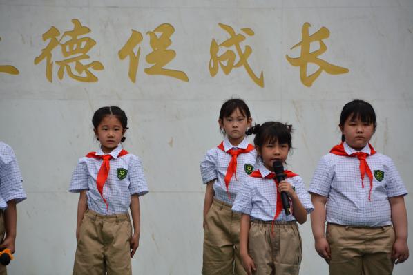 12名新隊員代表發言,稚氣又鏗鏘地表達了成為(wei) 一名光榮少先隊員的自豪和驕傲,也表達了努力為(wei) 紅領巾增光添彩的決(jue) 心。大隊輔導員帶領少先隊員宣誓,隊員們(men) 舉(ju) 起右拳在隊旗下莊嚴(yan) 宣誓:“ 我是中國少年先鋒隊隊員。我在隊旗下宣誓:我熱愛中國共產(chan) 黨(dang) ,熱愛祖國,熱愛人民,好好學習(xi) ,好好鍛煉,準備著:為(wei) 共產(chan) 主義(yi) 事業(ye) 貢獻力量!”。他們(men) 用誓詞表達了對少年先鋒隊的無限向往和為(wei) 少先隊增光添彩的豪邁熱情!