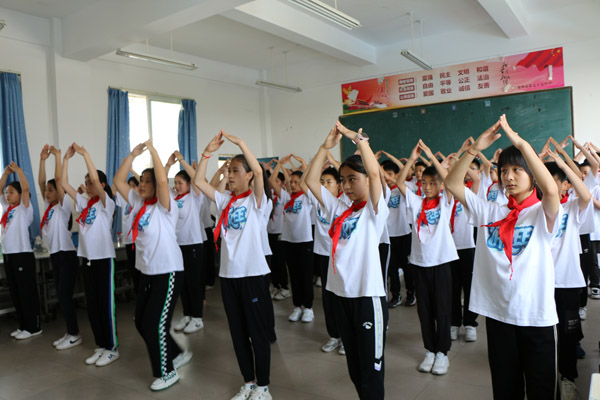 此次活動,學校高度重視,德育處前期準備工作充分,活動組織周密,校領導具體(ti) 分工,深入到各個(ge) 年級進行慰問、巡視,保證了活動的喜慶、有序和有效。一二年級首先舉(ju) 行莊嚴(yan) 的入隊儀(yi) 式,在一六班教室,少先隊入隊儀(yi) 式在鄭鑫老師的主持下有序進行,全體(ti) 少先隊員在德育主任劉豔的帶領下,麵向隊旗、舉(ju) 起右拳,莊嚴(yan) 宣誓。在三到六年級教室,紅歌嘹亮,每一個(ge) 年級一首統一歌曲,三年級是《盧溝橋》、四年級是《少年中國說》、五年級是《少年》、六年級是《一起向未來》,每一個(ge) 班級的學生,在演唱時都是專(zhuan) 注、投入,展現出積極昂揚的精神麵貌和朝氣蓬勃的青春活力,孩子們(men) 把教室當舞台,用心唱出了對祖國的愛和深情。韻律操表演,動作舒展嫻熟、簡潔流暢,展現了學校長期關(guan) 注學生體(ti) 質健康的成果。