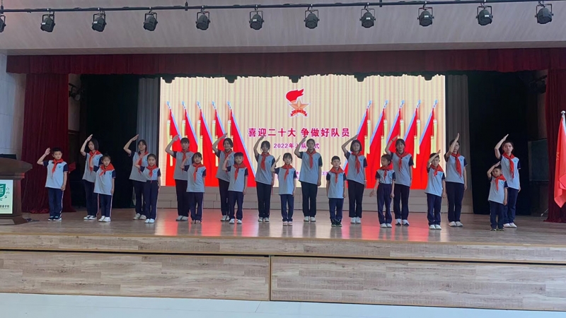 入隊儀(yi) 式篇:“喜迎二十大 爭(zheng) 做好隊員”入隊儀(yi) 式。學校嚴(yan) 格按照疫情防控要求,采用線上直播的形式舉(ju) 行一、二年級入隊儀(yi) 式,隊旗招展、隊歌嘹亮、誓言鏗鏘,當鮮豔的紅領巾飄揚在新隊員的胸前時,他們(men) 的臉上洋溢著激動與(yu) 自豪。