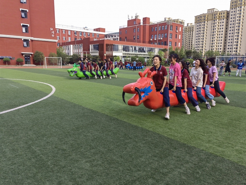賽龍舟是是端午節最重要的節日民俗活動之一,為(wei) 了引導學生了解端午節賽龍舟這一重要習(xi) 俗,6月3日下午5點,學校舉(ju) 行旱地龍舟接力比賽。每班組建一支參賽隊,每隊由男、女各6名隊員組成,賽道長50米,每組比賽由4支龍舟隊同時進行。比賽中運動員必須排成一列縱隊,先進行6名男生龍舟隊的比賽,當裁判員發令後,全隊整體(ti) 協調一致,由起點處向前移動,當龍舟的舟尾過女生的起點處時由男生調整龍頭龍尾的位置,再由女生龍舟隊進行接力衝(chong) 向終點處點。各參賽隊充分發揮團隊協作優(you) 勢,奮勇爭(zheng) 先,喝彩聲、加油聲響徹操場。