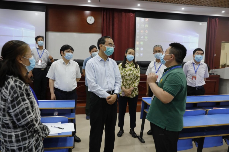 座談會(hui) 開始前,尹洪斌一行對2022年專(zhuan) 升本考試河南財政金融學院考點進行了巡視,詳細了解考試安全、疫情防控等工作,通過視頻監控察看了考場情況和考務人員工作情況,對專(zhuan) 升本考務工作進行現場檢查指導。