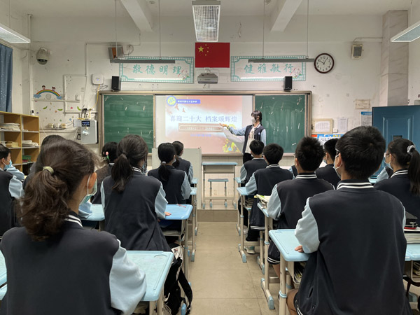 2022年6月9日,學校的LED電子顯示屏持續滾動播放“喜迎二十大,檔案頌輝煌”、“保護檔案,人人有責”、“紀念6·9國際檔案日,增強全社會(hui) 檔案意識”等宣傳(chuan) 內(nei) 容,向全體(ti) 師生普及了檔案法規知識,提升了檔案工作的知曉度、影響力。2022年6月10日,鄭州市第七十五中學班主任組織學生利用班會(hui) 課開展“喜迎二十大,檔案頌輝煌”主題教育活動,引導學生從(cong) 國際檔案日的由來、曆年檔案日的主題內(nei) 容、學習(xi) 貫徹檔案法、爭(zheng) 做守法好公民、中華人民共和國檔案法(2020年修訂)等多個(ge) 方麵全方位了解了檔案發展的曆史和成果。同時,還帶領學生參觀了學校的校史館,讓學生具體(ti) 感知了檔案在學校工作中的作用。