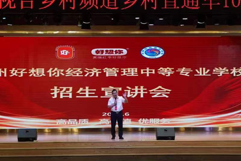 初夏時節的鄭州好想你校園,萬(wan) 畝(mu) 棗花盛開,花香四溢,映襯著好想你企業(ye) 成立30周年的熱鬧景象。6月16日,鄭州好想你經濟管理中等專(zhuan) 業(ye) 學校在黨(dang) 建學院召開招生宣講會(hui) 。河南廣播電視台鄉(xiang) 村頻道鄉(xiang) 村直通車的100多名站長和來自全省各地的學生、家長參加了此次宣講。