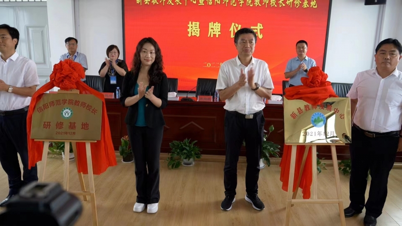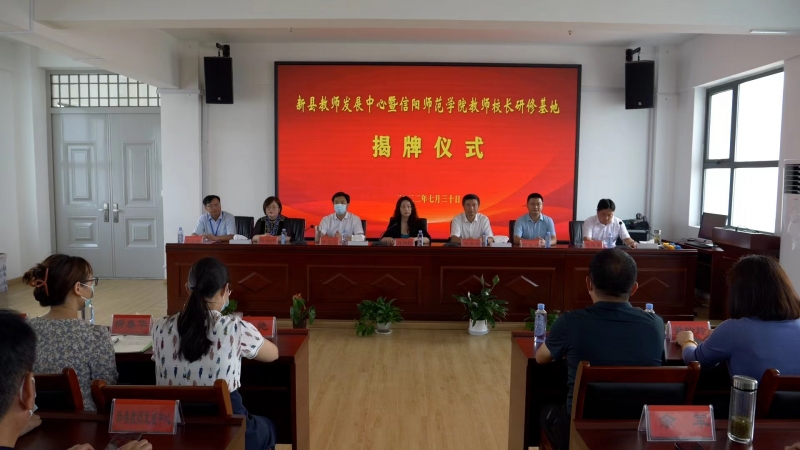 7月30日,新縣教師發展中心暨信陽師範學院教師校長研修基地揭牌儀(yi) 式在新縣教師發展中心新址舉(ju) 行,這是信陽師範學院河南省中小學教師校長研修院擔綱實施的“河南省義(yi) 務教育師資薄弱環節改善暨中小學素質提升工程——新縣教師發展支持服務體(ti) 係建設項目”階段性成果。