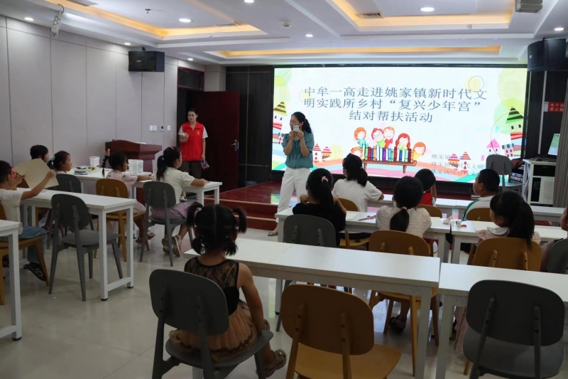 為(wei) 貫徹落實上級主管部門關(guan) 於(yu) 做好文明校園結對幫扶鄉(xiang) 村學校少年宮、鄉(xiang) 村"複興(xing) 少年宮"文明實踐工作有關(guan) 要求和助推鄉(xiang) 村振興(xing) 工作有關(guan) 精神,切實開展好結對幫扶工作,積極發揮省級文明校園的引領示範作用,8月16日上午,鄭州市中牟縣第一高級中學組織教師幫扶誌願者,在學校工會(hui) 主席賈洪斌、副校長馬傑的帶領下一行7人前往姚家鎮新時代文明實踐所鄉(xiang) 村"複興(xing) 少年宮"開展結對幫扶活動。