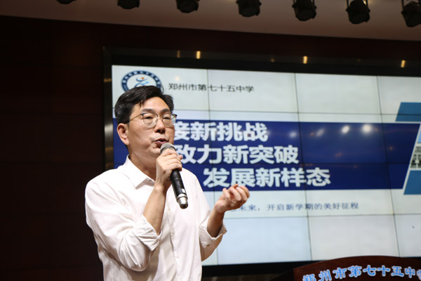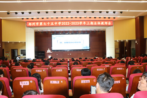 涼風收夏暑,新雨帶秋嵐。8月30日下午,鄭州市第七十五中學在學校報告廳召開了2022-2023學年上學期全體(ti) 教師會(hui) 。會(hui) 議由學校辦公室副主任劉豔主持,全體(ti) 教職工參加了會(hui) 議。