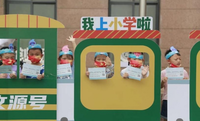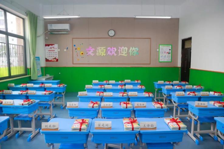 鄭州市金水區文源小學是2017年建成投入使用,2017年秋季開始招生,今年2022級的新同學是在喜迎黨(dang) 的二十大的熱潮中入學的,有了他們(men) 的加入,金水區文源小學成為(wei) 了一個(ge) 擁有六個(ge) 年級的大家庭。為(wei) 了增強孩子們(men) 的歸屬感,讓紅色種子從(cong) 小紮根於(yu) 心,學校專(zhuan) 門準備了具有特別意義(yi) 的開學課程。讓每一位新加入文源的新同學都成為(wei) 真正的主角,用自己的經曆去感受求學路上的第一次成長。儀(yi) 式感滿滿的紅毯、隨風飄搖的夢想氣球、等待啟程的“文源號”;寬敞明亮的教室、潔淨如新的桌椅、精美的“書(shu) 本禮包”、別具一格的黑板圖畫,都飽含著老師對孩子們(men) 、對教育的熱愛。