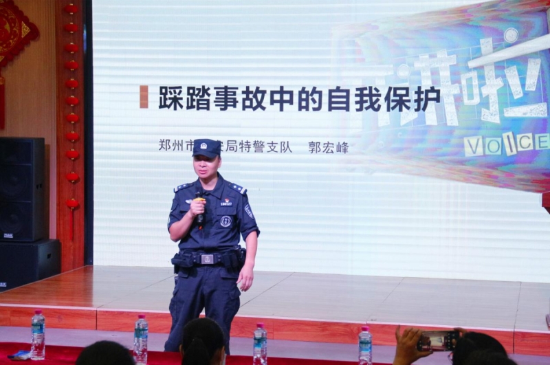 鄭州市公安局特警支隊四大隊一中隊中隊長、鄭州市公安局警務實戰教官郭宏峰為(wei) 學生們(men) 進行了安全自護教育。通過視頻播放、知識問答、遊戲互動等形式向同學們(men) 講解安全小常識,手把手教授“遇到校園欺淩怎麽(me) 辦”“歹徒闖入學校師生如何自救”“下車時如何正確安全打開車門”等,讓師生們(men) 樹立自我防範意識,熟練掌握了生活中一些自救自護的本領。