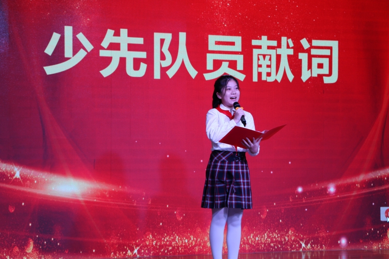 少先隊員代表劉晨菲為(wei) 表彰大會(hui) 獻詞。她首先向老師們(men) 送上了節日的祝賀,同時以《感恩教師》為(wei) 主題,向辛勤培養(yang) 他們(men) 的老師表達了感恩感謝之情。熱情的演講贏得了在場老師們(men) 的陣陣掌聲。