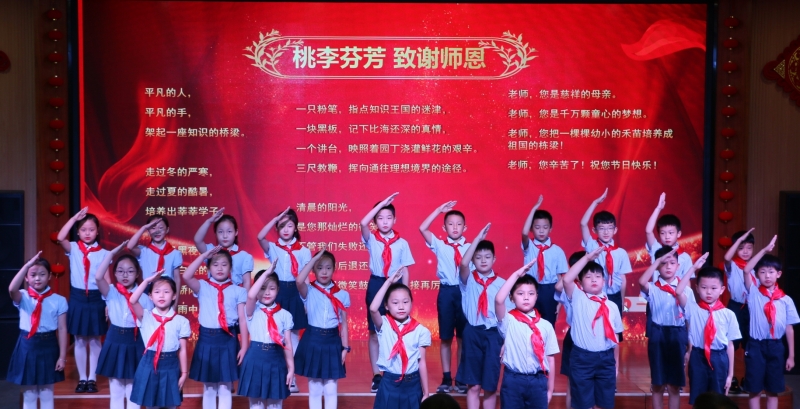 為(wei) 了表達對老師們(men) 節日的祝福和感謝,三年級的少先隊員們(men) 還帶來了詩歌朗誦《桃李芬芳 致謝師恩》。聽著孩子們(men) 稚嫩的聲音,在場的老師既開心又感動,同時也感到了無比的幸福。