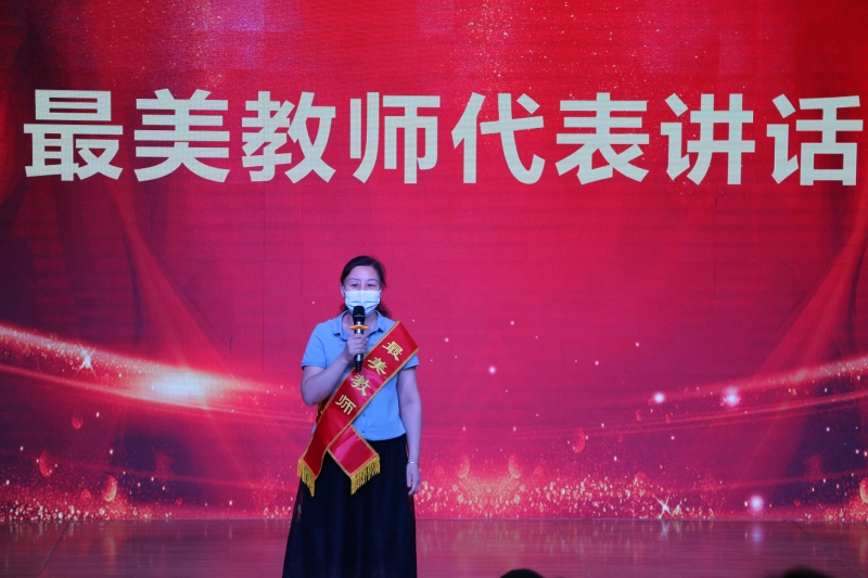 隨後,“最美教師”代表張麗(li) 老師發表了獲獎感言。她說:“作為(wei) 一名人民教師,讓我們(men) 不忘教育初心,牢記育人使命,永遠把為(wei) 黨(dang) 、為(wei) 國孕育棟梁作為(wei) 己任,為(wei) 做好習(xi) 近平總書(shu) 記所要求的新時代“四有”好教師而繼續揚帆遠航。”真誠的話語帶給人溫暖,熱情的演講給予人力量。