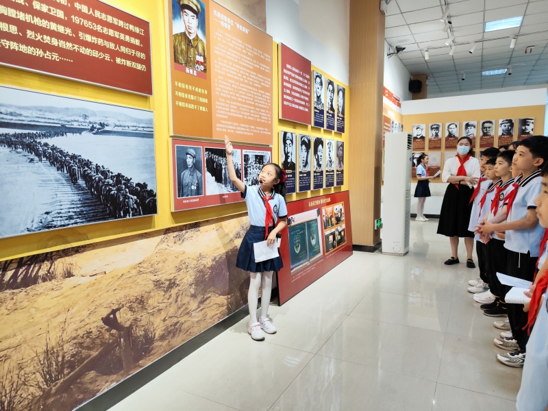 跟隨著紅領巾講解員的腳步,隊員們(men) 走進了紀念館。展廳裏一幅幅生動的圖片,讓少先隊員們(men) 身臨(lin) 其境地感受到革命先烈奮不顧身、舍生忘死的革命激情。少先隊員在一段段文字、一張張圖片、一個(ge) 個(ge) 名字中,追憶崢嶸歲月,緬懷革命先烈們(men) 的豐(feng) 功偉(wei) 績、紅色基因的種子在他們(men) 的心底悄然萌發。