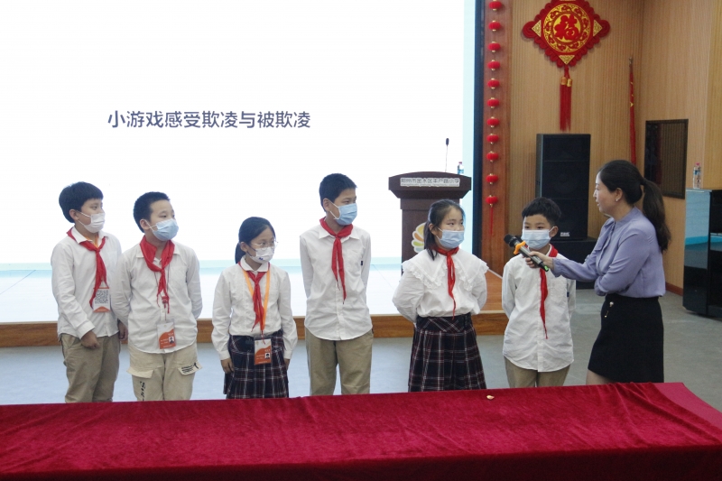 孟律師運用圖文、視頻及真實案例圍繞“什麽(me) 是校園欺淩”“校園欺淩會(hui) 造成哪些後果”“為(wei) 什麽(me) 會(hui) 有校園欺淩”“法律怎麽(me) 看待校園欺淩”“怎樣預防和應對校園欺淩”五方麵對防欺淩現象進行生動、詳細、全麵的講述分析,此外孟律師還通過遊戲方式帶領學生感受欺淩與(yu) 被欺淩,在互動環節中,模仿被欺淩者的同學說道“自己感到害怕,全身發抖,深深感受到了校園欺淩對被欺淩者的巨大傷(shang) 害。”孟律師強調同學之間應該互相幫助、團結友愛、和諧共處,如果遭遇到校園暴力傷(shang) 害,千萬(wan) 不要獨自一人承受恐懼和痛苦,更不能以暴製暴,正確做法是及時告訴家長和老師,必要時拿起法律武器,維護自身的正當權益,用正確的方法麵對校園暴力。她還教會(hui) 學生做情緒的主人,學會(hui) 自我調節。