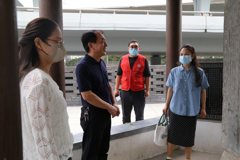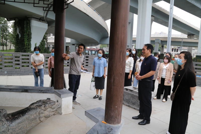 在社區的馮(feng) 書(shu) 記帶領下,全體(ti) 黨(dang) 員教師依次參觀了“政務服務廳”“書(shu) 記會(hui) 客廳”“新時代文明實踐站”“紅廉書(shu) 屋”以及“黨(dang) 風廉政教育基地”等場所,聆聽翠花社區如何將清廉建設充分融入到社區建設的方方麵麵。其中,“起筆繪清風,清廉入民心”主題書(shu) 畫展的作品吸引黨(dang) 員駐足觀看。 隨後,全體(ti) 黨(dang) 員教師來到位於(yu) 農(nong) 業(ye) 路高架與(yu) 京廣快速路交叉口的乾隆聖旨碑參觀。據馮(feng) 書(shu) 記介紹,該聖旨碑立於(yu) 清朝乾隆三十六年,為(wei) 表彰婁偉(wei) 之父婁望舉(ju) 為(wei) 官清正,與(yu) 妻子一起教子有方,加封婁望舉(ju) 為(wei) 修職郎,為(wei) 此乾隆皇帝專(zhuan) 下聖旨一道,後將聖旨立碑以示後人。“乾隆聖旨碑,也是我們(men) 的清廉文化教育陣地所在。這裏代表著清廉文化的一種傳(chuan) 承,非常具有紀念和教育意義(yi) 。”馮(feng) 書(shu) 記說道。黨(dang) 員教師認真聆聽講解,輕聲暢談心得,感悟古時的廉潔家風。