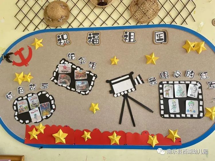 環創篇。通過環境環創讓幼兒(er) 了解十月一日是中華人民共和國的國慶節、是祖國媽媽的生日,知道五星紅旗是中華人民共和國的國旗——國旗、國徽代表我們(men) 的國家,激發他們(men) 熱愛祖國的情感。