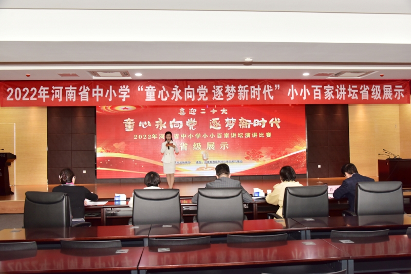 10月9日,在黨(dang) 的二十大即將勝利召開之際,2022年河南省中小學“童心永向黨(dang) 逐夢新時代”小小百家講壇演講比賽省級展示在kaiyun体育全站网页版入口成功舉(ju) 行。活動由kaiyun体育登入口主辦,kaiyun体育全站网页版入口小學生學習(xi) 報社承辦。全省各地進入省級展示的優(you) 秀選手用優(you) 質的內(nei) 容和昂揚的風貌向黨(dang) 的二十大獻禮!