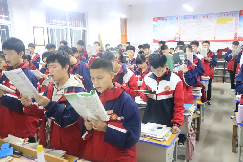 各班級將每天的晨讀時間劃分為(wei) 前後兩(liang) 個(ge) 時間段,第一個(ge) 時間段為(wei) 起床後至6:00,第二個(ge) 時間段為(wei) 6:00—7:00。根據化學、生物、政治、曆史、地理等學科教學進度確定第一階段本周的晨讀內(nei) 容,根據語文、英語學科教學進度確定第二階段本周的晨讀內(nei) 容,由學科任課教師提前告知學生。每天晨讀前,由該科課代表在黑板上寫(xie) 明晨讀內(nei) 容,做到任務下達及時、具體(ti) 、清楚。