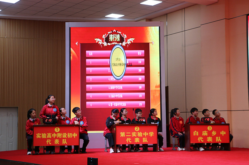 最後,郟縣實驗高中附設初中代表隊以總分265分的優(you) 異成績奪冠,茨芭鎮初中、第一實驗中學代表隊奪得二等獎,第二實驗中學、新城中學、白廟鄉(xiang) 初中代表隊獲得得三等獎,與(yu) 會(hui) 領導分別為(wei) 獲獎團隊現場頒獎。