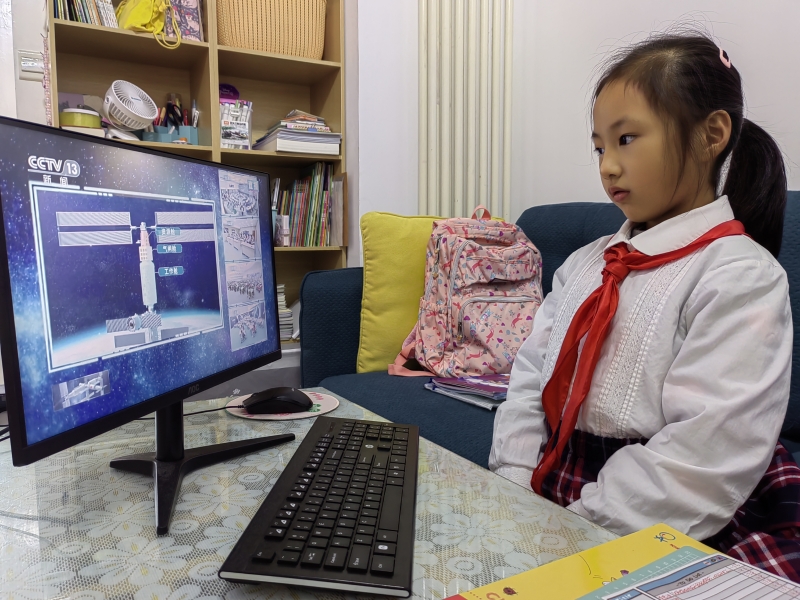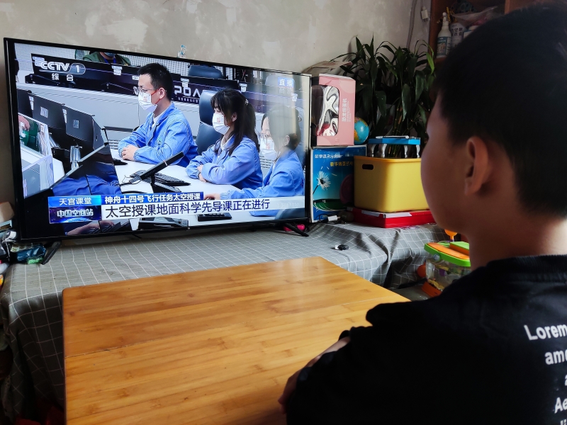 在家裏觀看的學生們(men) 緊盯屏幕,聚精會(hui) 神,並跟隨著“天宮課堂”的內(nei) 容時而緊張、時而驚歎。還有的學生同步嚐試開展相關(guan) 實驗,從(cong) 天地差異中感知宇宙的奧秘、體(ti) 驗探索的樂(le) 趣,立誌長大也要當一名宇航員。