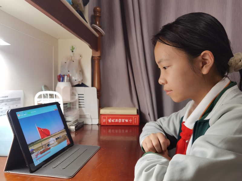 今年建隊節恰逢黨(dang) 的二十大召開,全國少工委和鄭州市共青團分別進行了“喜迎二十大 爭(zheng) 做好隊員”主題雲(yun) 隊課和主題隊日活動視頻直播。金水區文源小學的少先隊員們(men) 齊聚雲(yun) 端,跟隨主題雲(yun) 隊課直播畫麵一同來到祖國各地,看密林叢(cong) 生、猿鳴鳥語的熱帶雨林中奇特的動植物、學習(xi) “汽車是怎樣造出來的?”“小軍(jun) 迷們(men) 喜歡的‘胖妞’運-20到底有多大?”……充分感受祖國發展的日新月異、繁榮昌盛。神舟十四號航天員陳冬、劉洋和蔡旭哲帶來的精彩太空微隊課《把祖國的榮耀寫(xie) 進太空》,讓孩子們(men) 被浩瀚的太空、神奇的科學實驗和先進的航天技術所吸引。他們(men) 也通過 “天宮課堂”了解到各種各樣的科學知識,感受到科學與(yu) 人們(men) 的生活息息相關(guan) ,並立誌要認真學習(xi) 航天知識,長大為(wei) 祖國的科技發展貢獻力量!