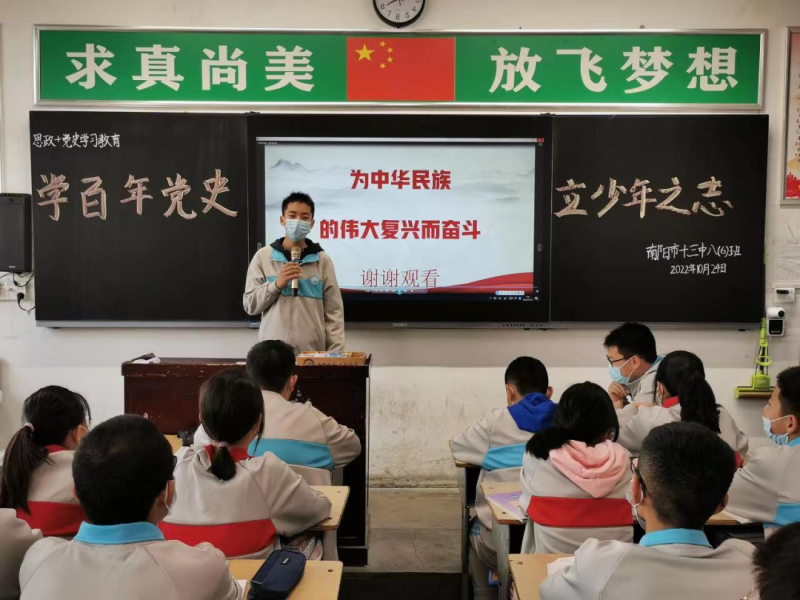 連日來,南陽市教育係統通過專(zhuan) 題報告會(hui) 、思政課教學、主題黨(dang) 團日活動、國旗下講話、主題班隊會(hui) 、微信公眾(zhong) 號等渠道,廣泛開展學習(xi) 宣傳(chuan) 活動,實現了教育係統全覆蓋。