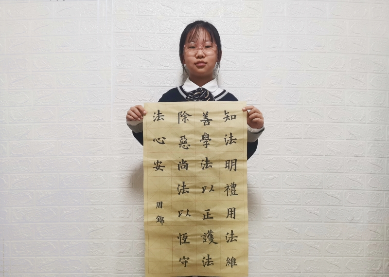 通過書(shu) 法教師的精心輔導,一幅幅精美的作品躍然紙上——“有法可依,有法必依,執法必嚴(yan) ,違法必究”“知法明理,用法維善,學法以正,守法心安”。孩子們(men) 用筆靈活,結體(ti) 精細,橫豎撇捺間彰顯憲法精神的浩然正氣。