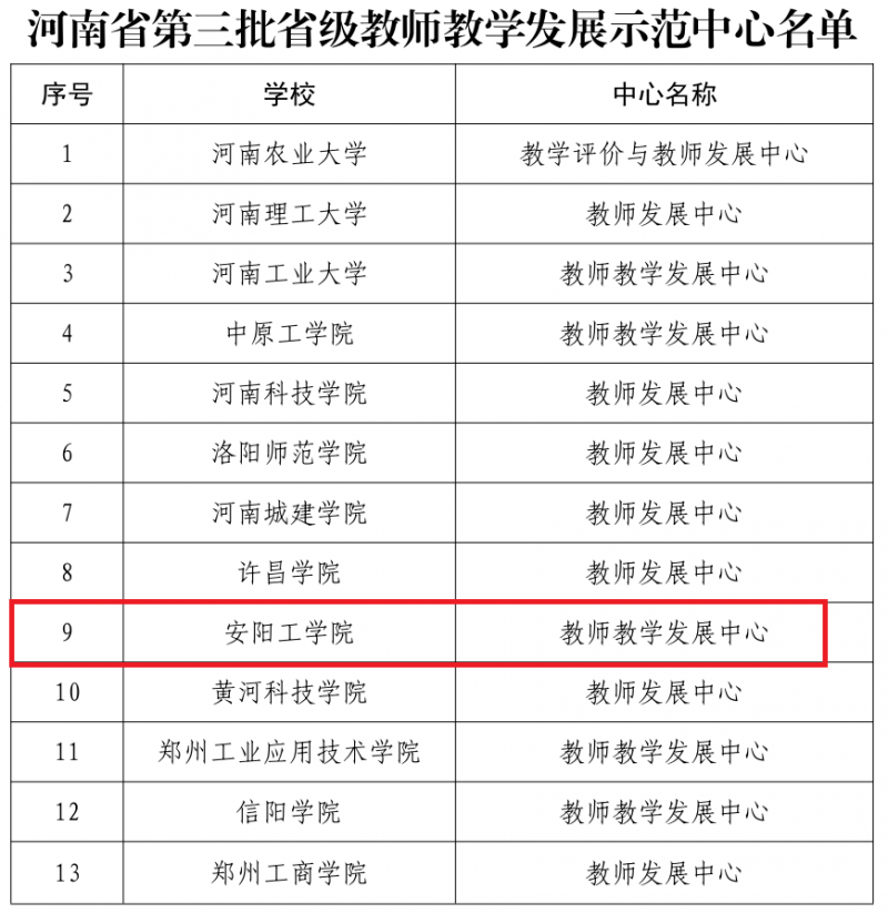 近日,kaiyun体育登入口下發《關(guan) 於(yu) 公布第三批省級教師教學示範中心的通知》(教高〔2022〕375號),安陽工學院教師發展中心成功入選河南省第三批省級教師教學發展示範中心。