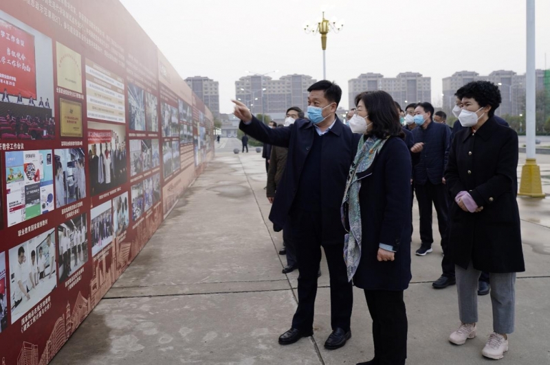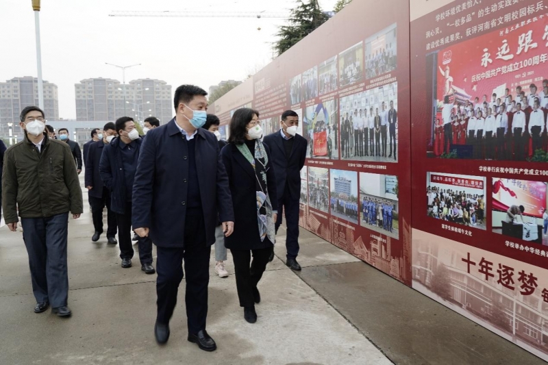 在學校神舟廣場,溫道軍(jun) 代表學校對毛傑一行來校調研指導表示歡迎,對教育廳及市委、市政府關(guan) 心支持學校事業(ye) 發展表示感謝,並從(cong) “黨(dang) 建引領揚風帆”“立德樹人擔使命”“人才強校聚眾(zhong) 智”“教學科研深耕耘”“技能大賽展風采”“產(chan) 教融合謀發展”“就業(ye) 創業(ye) 拓新路”“人文校園育英才”等8個(ge) 方麵介紹了學校“我們(men) 這十年”辦學成果展。