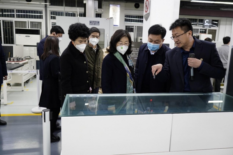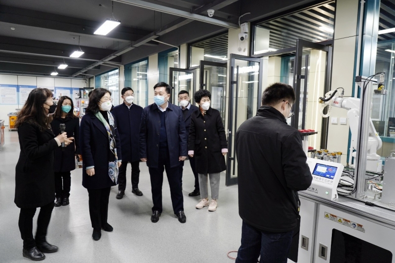 毛傑一行先後實地調研了工業(ye) 機器人工程中心、數控加工中心、精密製造中心等教學實訓場地,聽取相關(guan) 學院負責人關(guan) 於(yu) 人才分類培養(yang) 、教學改革、實訓條件、學生技能大賽等方麵的介紹,並與(yu) 正在進行實訓的教師親(qin) 切交流,深入了解教師技能競賽情況。