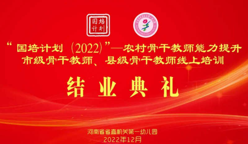 12月27日,由河南省省直機關(guan) 第一幼兒(er) 園的“國培計劃(2022)——農(nong) 村骨幹教師能力提升市級骨幹教師、縣級骨幹教師培訓”結業(ye) 典禮在線上舉(ju) 行。省直一幼黨(dang) 委書(shu) 記、園長韓虹及班子成員出席結業(ye) 典禮。伴隨著省直一幼園歌《愛的搖籃》,來自省內(nei) 各地市的400名學員和國培培訓團隊共同完成了為(wei) 期13天的集中線上培訓,順利結業(ye) 。