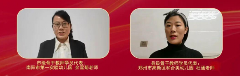 南陽市第一實驗幼兒(er) 園餘(yu) 雪菊、鄭州市高新區和合美幼兒(er) 園杜涵分別作為(wei) 市級和縣級骨幹教師學員代表發言。她們(men) 表示,感謝省直一幼的精神籌備,老師們(men) 的辛勤付出,“國培”為(wei) 大家創造了前所未有的機會(hui) 。學員們(men) 每一天都在成長,每一刻都在蛻變,進一步拓寬了眼界,堅定了幼教初心。希望大家一起帶著收獲、感悟和熱血,學用結合,用實踐交付一張滿意的答卷。今年是省直一幼建園70周年,衷心祝福她的明天更加燦爛輝煌。