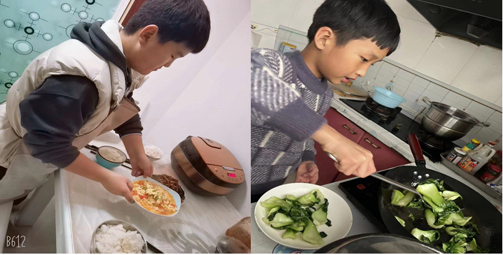 四、五年級同學“我是廚房小達人”,手起刀落,各種各樣的食材在他們(men) 手中完成了華麗(li) 變身,番茄炒雞蛋、油炸小酥肉、醋溜土豆絲(si) 、炒青菜、雞蛋煎餅……一段段視頻記錄了他們(men) 做菜的過程,一道道色香味俱全的誘人菜肴彰顯著孩子們(men) 的勞動成果,掌握了廚藝ABC,積累了生活,收獲了成功的喜悅,大家還因此寫(xie) 出了一篇篇優(you) 秀習(xi) 作。